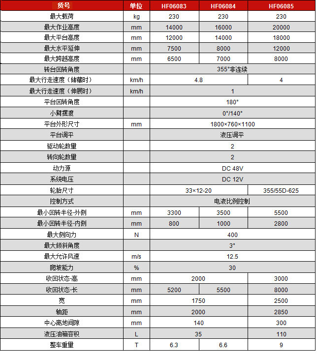自動調(diào)平工作平臺液壓旋轉(zhuǎn)工作平臺霍爾效應全比例控制器行駛確認AC電源線接至工作平臺喇叭計時器傾斜警報全時正牽引驅(qū)動雙速行駛馬達應急泵CAN總線智能控制超載限制選配特征2.4m平臺籃擺動軸工作平臺旋轉(zhuǎn)門工作平臺備用杠桿焊機預接組件焊接線接至工作平臺空氣管接至工作平臺液壓油冷卻器惡劣環(huán)境套件航空防撞組件工具托盤警報套件平臺工作燈